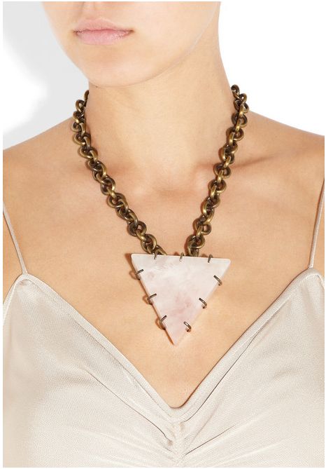 I love this piece. It combines two of my favorite materials. The chunky brass chain is substantial and the pyramid cut quarts is fantastic.